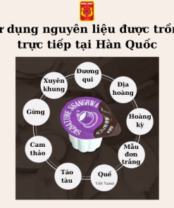 Thành phần: Rễ mẫu đơn (nội địa Hàn), đường fructo – oligosaccharide, địa hoàng (nội địa Hàn), rễ bạch chỉ (nội địa Hàn), hoàng kì (nội địa Hàn), gừng khô (nội địa Hàn), táo tàu (nội địa Hàn), quế, cam thảo (nội địa Hàn)