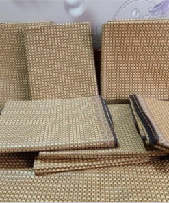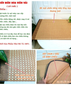 - Đây là sự cả tiến của chiếu điền hòa viền vải. loại chiếu này có mặt trên giống chiếu điều hòa viền vải, có độ mát tương đương nhau, nhưng loại chiếu này có viền được may bằng lụa vàng nên độ thẩm mỹ cao hơn, ngoài ra mặt phía sau còn đượt lót thêm 1 lớp lụa dầy phía sau làm tăng độ bền cũng như chất lượng của sản phẩm. Độ bền sử dụng từ 3-4 năm và đặc biệt có thể sử dụng được 4 mùa quanh năm