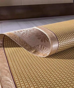 - Đây là sự cả tiến của chiếu điền hòa viền vải. loại chiếu này có mặt trên giống chiếu điều hòa viền vải, có độ mát tương đương nhau, nhưng loại chiếu này có viền được may bằng lụa vàng nên độ thẩm mỹ cao hơn, ngoài ra mặt phía sau còn đượt lót thêm 1 lớp lụa dầy phía sau làm tăng độ bền cũng như chất lượng của sản phẩm.