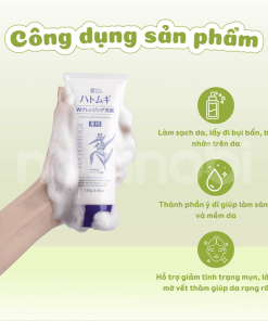 – Sữa Rửa Mặt Tẩy Trang Và làm sáng mịn Hatomugi The W Cleansing Foam 130g: phù hợp với mọi loại da, đặc biệt là da xỉn màu và thâm sạm.