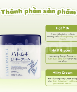 Kem Dưỡng Hatomugi Chiết Xuất Ý Dĩ Làm Sáng Mịn 300g là dòng kem dưỡng đến từ thương hiệu mỹ phẩm Hatomugi của Nhật Bản, với thành phần chính từ 81% là nước và hạt ý dĩ cải thiện tình trạng khô ráp và mang đến làn da căng mướt, mịn màng, rạng rỡ. Bên cạnh đó, hỗ trợ làm dịu và làm sáng mịn.