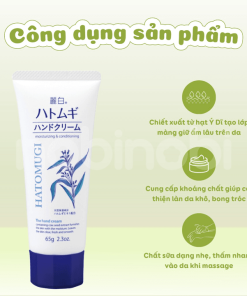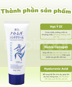 Kem Dưỡng Tay đến từ thương hiệu Hatomugi Nhật Bản, sản phẩm với thành phần chiết xuất từ hạt ý dĩ giúp cung cấp dưỡng chất và độ ẩm cho da tay, giúp da tay mềm mịn và tươi sáng hơn.