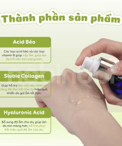 Soluble Collagen: giúp hỗ trợ làm mờ nếp nhăn và tăng độ đàn hồi cho da hiệu quả, khiến da giữ ẩm tốt hơn và điều chỉnh mật độ của các sợi collagen trong da, cải thiện các vấn đề chung trên da, giữ gìn làn da trẻ trung, đầy sức sống.