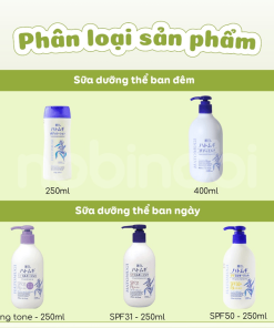 – Sữa dưỡng thể chống nắng SPF50 PA+++ 250ml: Mọi loại da, dùng chống nắng ban ngày với chỉ số chống nắng cao hơn.
