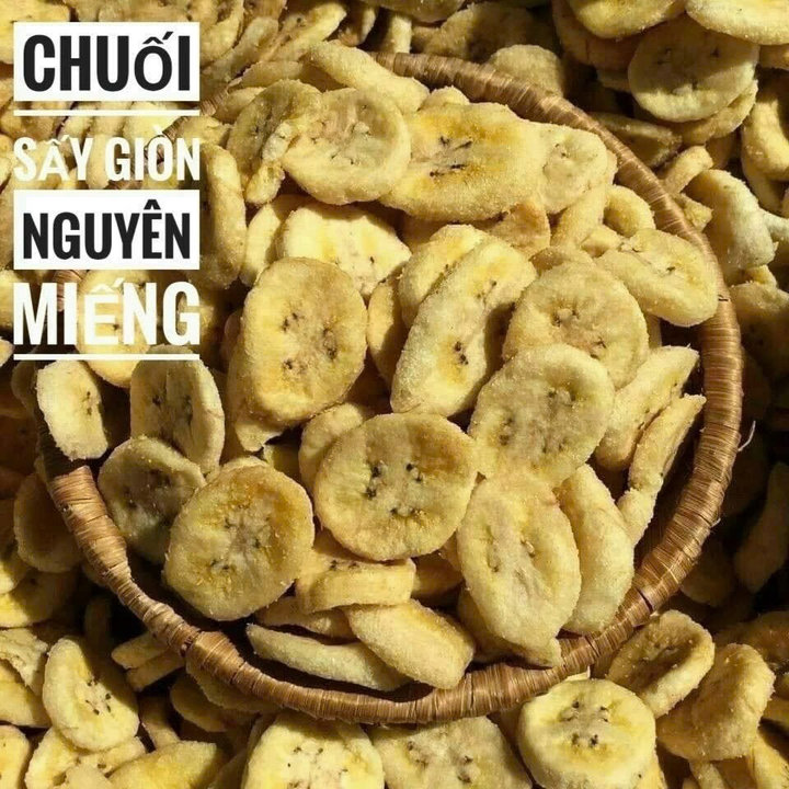 Chuối sấy giòn nguyên miếng được làm từ chuối chín tự nhiên, cắt lát đều, sấy giòn giúp giữ trọn độ giòn rụm – vị ngọt thanh – hương thơm tự nhiên. Lát chuối nguyên vẹn, đẹp mắt, thích hợp ăn vặt hoặc dùng trang trí, topping.
