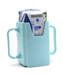 – Giai đoạn bé tập uống là thời điểm bé rất hiếu động, rất thích tự tay cầm nắm mọi đồ vật, nếu mẹ tự đưa cho bé cầm hộp sữa/ nước hoa quả bé có thể làm đổ ra ngoài vì bé chưa ý thức được mọi việc bé đang làm. Chính vì thế nếu mẹ có một dụng cụ hỗ trợ để hộp sữa có tay cầm thì sẽ rất an toàn cho bé