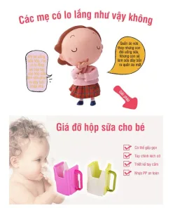 – Cốc đựng hộp sữa có tay cầm có thể điều chỉnh theo kích thước hộp sữa