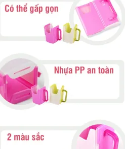 – Thân hộp được làm bằng nhựa và có độ cứng đủ để chịu được áp lực của bàn tay nhỏ bé của bé. Đặt một hộp sữa hoặc đồ uống bằng giấy vào đó có thể ngăn sữa và đồ uống tràn ra ngoài.