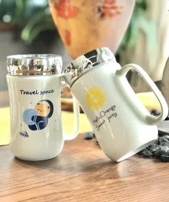Cốc Sứ Uống Nước, Pha Trà Giữ Nhiệt Có Nắp, Sang Trọng
