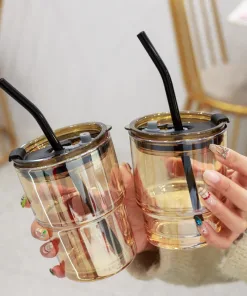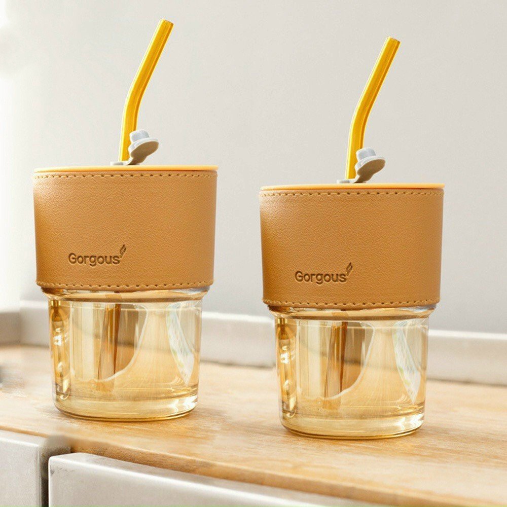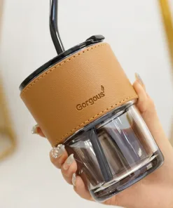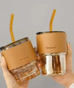 - Tên sản phẩm: Cốc Thủy Tinh Có Nắp Bọc Da Có Ống Hút 450ml – Sương Mai