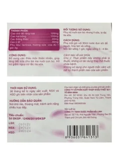 – Phụ liệu: lactose, hương sữa vừa đủ 1 gói 3g