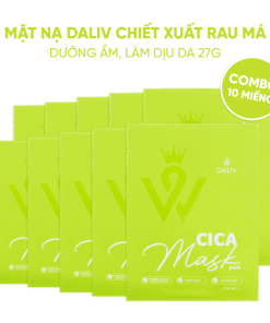 Mặt nạ Daliv chiết xuất Rau má dưỡng ẩm, làm dịu da với chiết xuất Rau má, Madecassoside và Asiaticoside, sản phẩm giúp làm dịu nhanh vùng da nhạy cảm, mẩn đỏ, đồng thời phục hồi tổn thương. Kết cấu thẩm thấu nhanh, mang lại cảm giác dịu mát, dễ chịu.