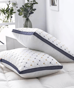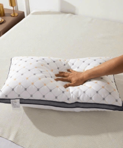 – Vỏ gối vải cotton 100% được đệm 1 lớp bông và chần quả trám rất đẹp mắt và êm ái.
