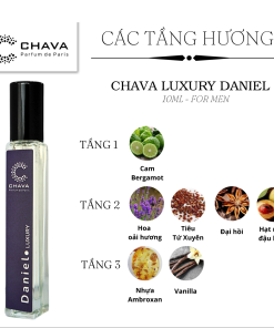 - Chava Daniel là sự khéo léo pha trộn giữa Cam Bergamot và hương Ambroxan, tạo nên một khoảng màu xanh tươi mát của bầu trời. Cùng sự mạnh mẽ và ấm nồng của tiêu đen và gỗ tuyết tùng khiến mùi hương trở nên lôi cuốn không điểm dừng.