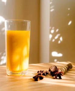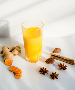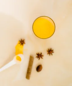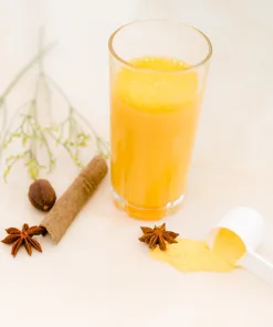 - Pha 2 muỗng sữa nghệ vào 180ml nước ấm (khoảng 40 độ C), khuấy đều đến khi tan hoàn toàn. Ngon hơn khi thêm mật ong.