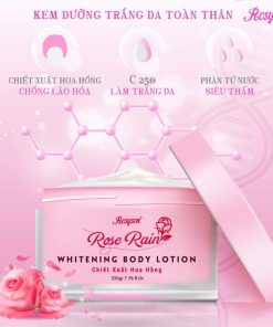 Kem Dưỡng Trắng Da Toàn Thân Rose Rain Whitening Body Lotion đột phá công nghệ dưỡng trắng từ Đức C250 giúp trắng da, đều màu da, cải thiện các vết nám.