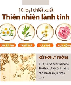Thành phần: Toner Hoa Cúc & AHA Milaganics là sự kết hợp của 10 loại chiết xuất, tinh dầu tự nhiên cùng với AHA 5% và Niacinamide 3%