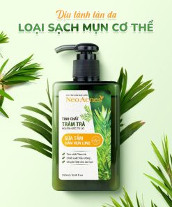 Sữa tắm mụn lưng, giảm nang lông, ngừa thâm mụn chiết xuất Tràm trà úc và trầu không NEOSKIN. Giảm mụn lưng thiên nhiên Neo Acnes chứa Tinh chất tràm trà từ cây Tràm Trà có nguồn gốc từ Tràm Trà Melaleuca Alternifolia Úc, sở hữu tính kháng khuẩn tự nhiên rất tốt, có thể làm khô và se còi mụn, mụn trứng cá nhanh gấp 3 lần các loại khác. NeoAcnes là giải pháp chăm sóc da mụn body, vim lỗ chân lông một cách an toàn và lành tính.