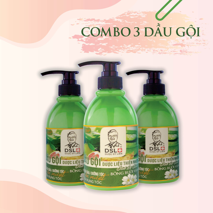 Tên sản phẩm: Combo 3 Chai Dầu Gội Dược Liệu Thiên Nhiên Thế Hệ Mới Bông Bưởi Vàng – DSL