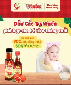 -Dầu Gấc tự nhiên Hebe mang đến các dưỡng chất thiết yếu cho con như Omega 3-6-9, Vitamin A, vitamin E giúp phát triển trí não của bé.