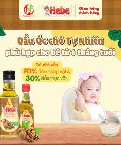 -Dầu Óc Chó Nguyên Chất Hebe từ 100% hạt óc chó nguyên chất mang đến các dưỡng chất thiết yếu cho con trong quá trình ăn dặm như Omega 3, Vitamin E và canxi