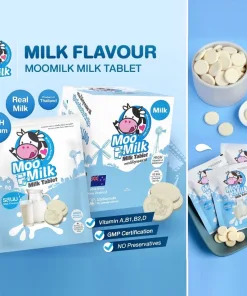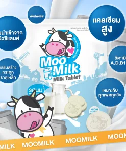 - Kẹo sữa Moo Milk là một loại sữa viên có tỉ lệ sữa cao tới 72%, nguồn sữa nhập khẩu từ New Zealand. Chỉ cần ăn 6 viên đã tương đương với 1 ly sữa bạn uống hàng ngày.