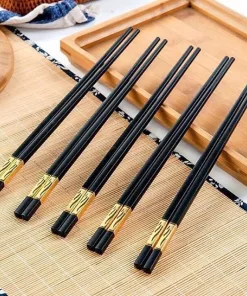 - Đũa hợp kim mạ vàng phong cách Hàn Quốc được thiết kế bọc viền hoa văn hợp kim mạ vàng đẹp, sang trọng. Sản phẩm chịu được nhiệt độ cao lên đến 260 độ C.