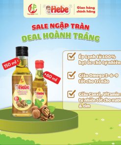 -Dầu Óc Chó Nguyên Chất Hebe từ 100% hạt óc chó nguyên chất mang đến các dưỡng chất thiết yếu cho con trong quá trình ăn dặm như Omega 3, Vitamin E và canxi