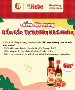 -Dầu Gấc tự nhiên Hebe mang đến các dưỡng chất thiết yếu cho con như Omega 3-6-9, Vitamin A, vitamin E giúp phát triển trí não của bé.