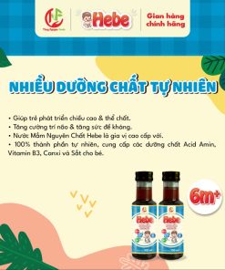 -Nước mắm Nguyên Chất Hebe là sản phẩm gia vị với thành phần nguyên liệu 100% tự nhiên và được sản xuất bằng phương pháp ủ chượp trong thùng gỗ truyền thống đặc trưng tại Phan Thiết. Nhờ vậy mà các dưỡng chất tinh túy được chắt chiu và giữ trọn trong từng giọt nước mắm đậm đà, có vị ngọt dịu tự nhiên từ thịt cá nên kích thích vị giác giúp bé ăn ngon miệng và hấp thu dưỡng chất tối ưu.