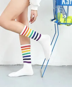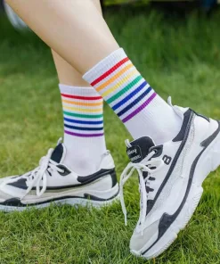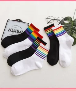 COMBO 5 ĐÔI TẤT CAO CỔ SỌC KẺ CẦU VỒNG KIỂU DÁNG UNISEX