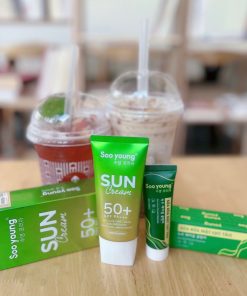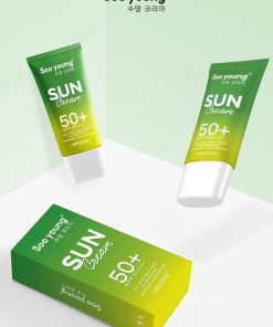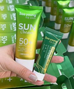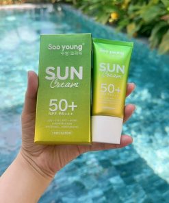 Thành phần trong 1 týp kem chống nắng vật lý Soo young gồm: Water, cetyl alcohol, butylene glycol, propylene glycol, glycerin, titanium dioxide, zinc oxide, tocopheryl acetate, niacinamide, collagen……