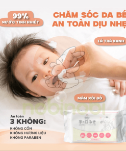 – 99% nước tinh khiết: Cung cấp độ ẩm dịu nhẹ, an toàn cho da bé.