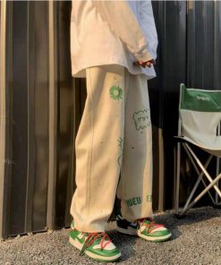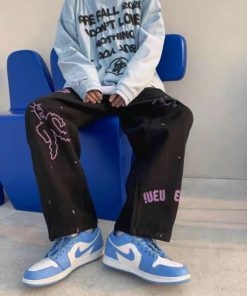 2. Quần jogger nỉ ống rộng dây rút họa tiết họa hình