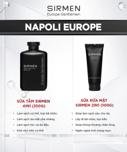 1. Sữa tắm gội dành cho nam 4 trong 1 hương nước hoa châu Âu SIRMEN Europe Gentlemen dòng cao cấp 350g chiết xuất tự nhiên bằng công nghệ EU-Nano đậm đặc gấp 2 lần sữa tắm thông thường.