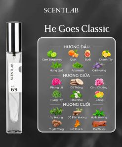 GOES CLASSIC NO. 69 là mùi hương dành cho nam thuộc nhóm hướng Citrus với phong cách trẻ trung, nhiệt huyết, năng nổ và sôi nổi. HE GOES CLASSIC NO. 69 mang hơi thở tươi mát của Cam Bergamot, Chanh Tây ở nốt đầu pha trộn với sự nhẹ nhàng nho nhã của Gỗ Thông, Phong Lữ ở nốt hai và kết thúc bằng nốt hương Gỗ Đàn Hương, Hổ Phách, Hương rêu, chắc chắn sẽ đưa chàng trai đến với cảm giác khoan khoái dễ chịu như vừa được hòa mình vào thiên nhiên trong lành, mát mẻ, vừa bừng tĩnh kịp thời để cảm nhận sự trẻ trung, nhiệt huyết bên trong mình