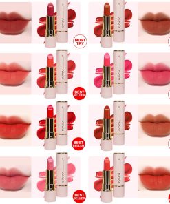 - Đóng gói: 1 son sáp (màu ngẫu nhiên) + 1 son kem (màu ngẫu nhiên)