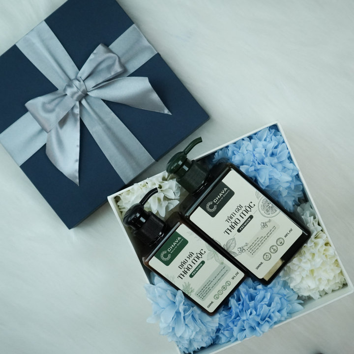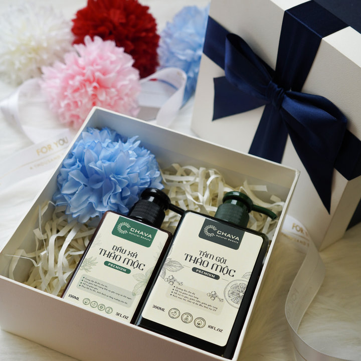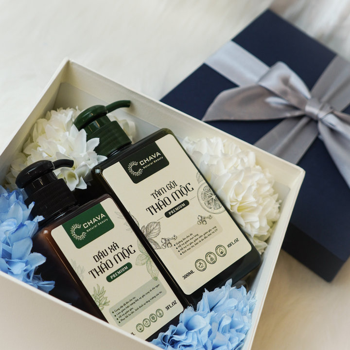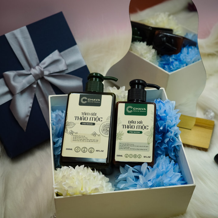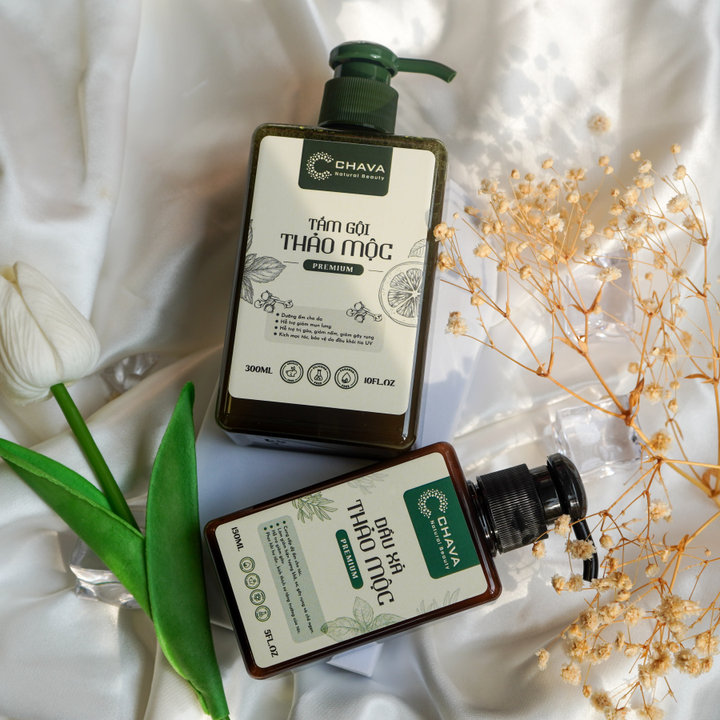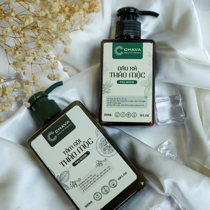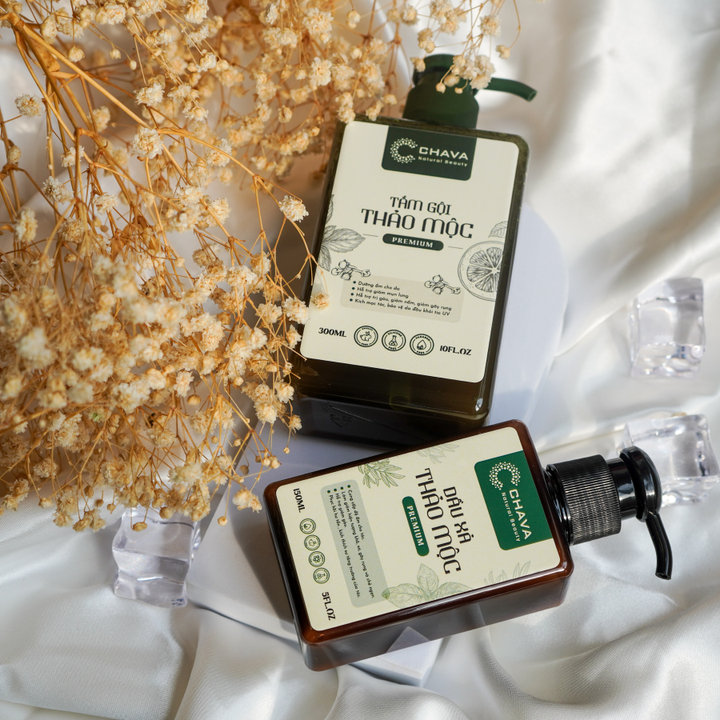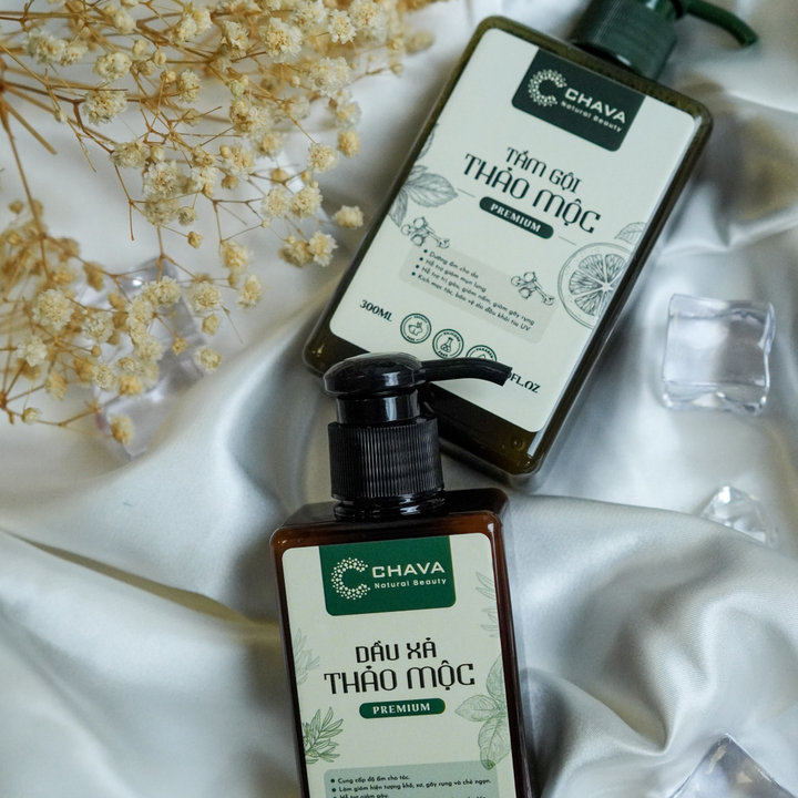 Tên sản phẩm: [COMBO QUÀ TẶNG] 1 TẮM GỘI THẢO MỘC PREMIUM 300ML + 1 DẦU XẢ THẢO MỘC PREMIUM 150ML – CHAVA NATURAL BEAUTY
