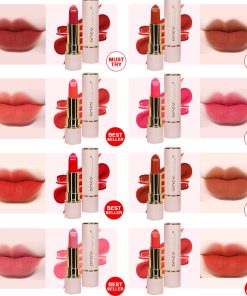- Bám màu khá lâu từ 6h – 8h tùy vào cấu tạo môi và ăn uống (son kháng nước, không kháng dầu nên hạn chế dầu mỡ).