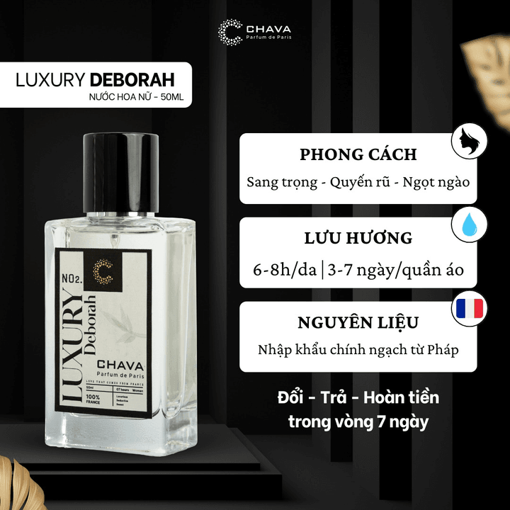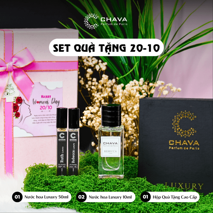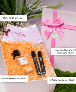 - Tên sản phẩm: [COMBO QUÀ TẶNG NƯỚC HOA 20-10] 1 NƯỚC HOA NỮ LUXURY 50ML + 2 NƯỚC HOA NỮ LUXURY 10ML + HỘP QUÀ TẶNG CAO CẤP – CHAVA