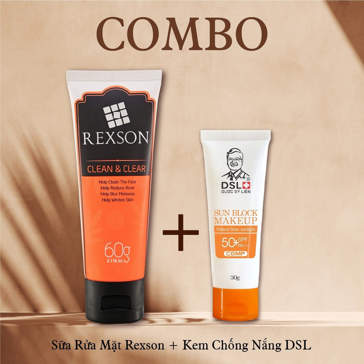 – Tên sản phẩm :Combo Sữa Rửa Mặt Rexson Và Kem Chống Nắng – Dược Sĩ Liên