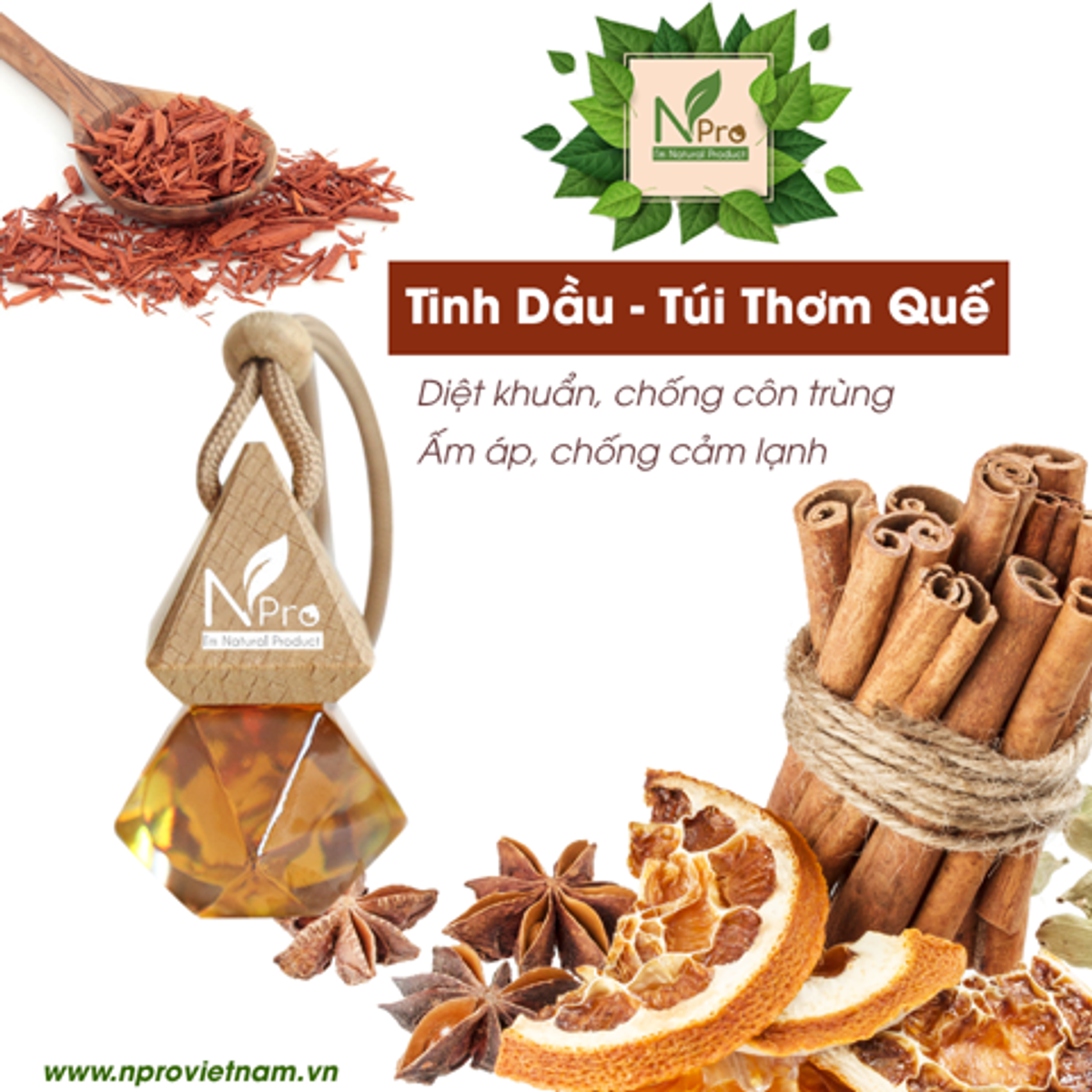 - Tên sản phẩm: Combo Túi Thơm Và Lọ Khuếch Tán Tinh Dầu Quế – NPro