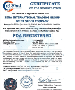 - Chứng nhận ISO 22000, FDA Hoa Kỳ đảm bảo chất lượng và an toàn cho người tiêu dùng