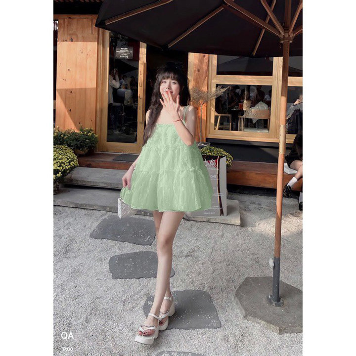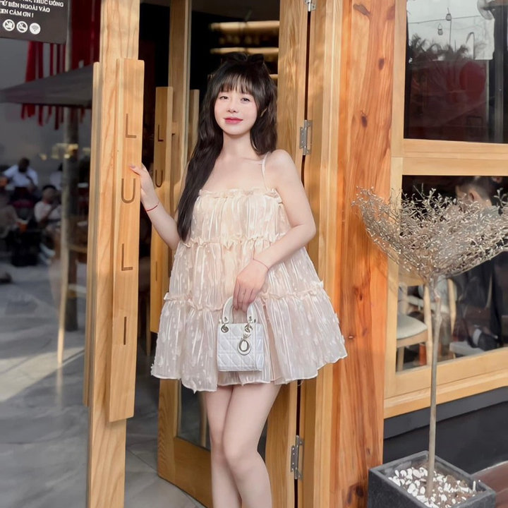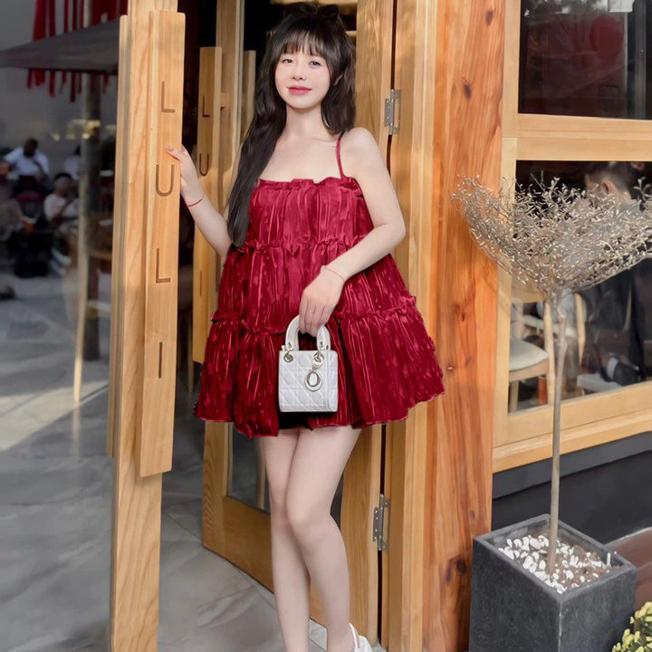 Chất vải mềm mại, đầm form to xòe rộng dáng babydol, form trên gối