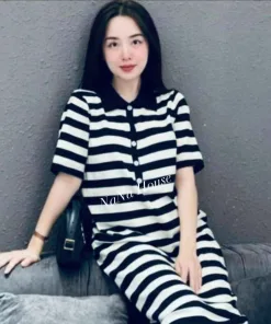 - Tên sản phẩm: Đầm Bầu Thun Sọc Đen Trắng – Nana House