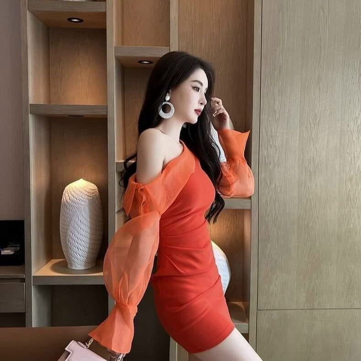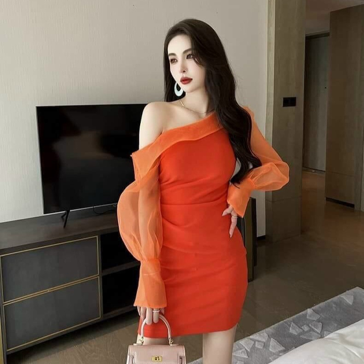 Tên sản phẩm: Đầm body lệch vai tay bồng tôn dáng sang chảnh V125 – CLOUDY DRESS