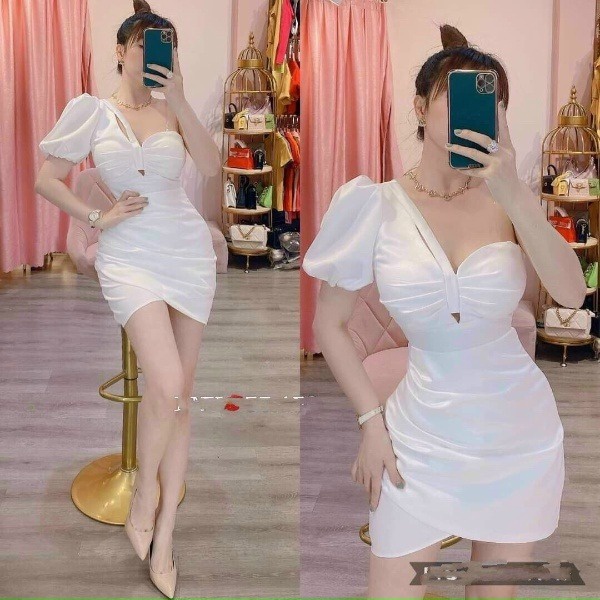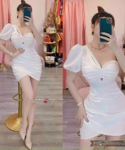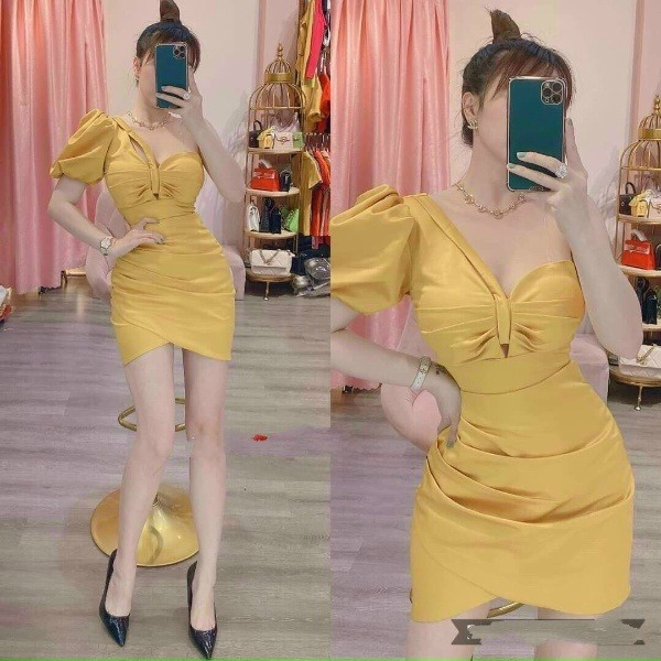 Tên sản phẩm: Đầm body nhún thun tay bồng1 tay tôn dáng sang chảnh V316 – CLOUDY DRESS