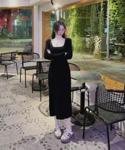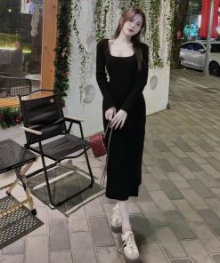 ĐẦM BODY THUN GÂN TAY DÀI CỔ VUÔNG BT689U- NANA FRRESIZE < 53KG