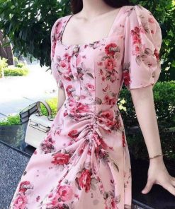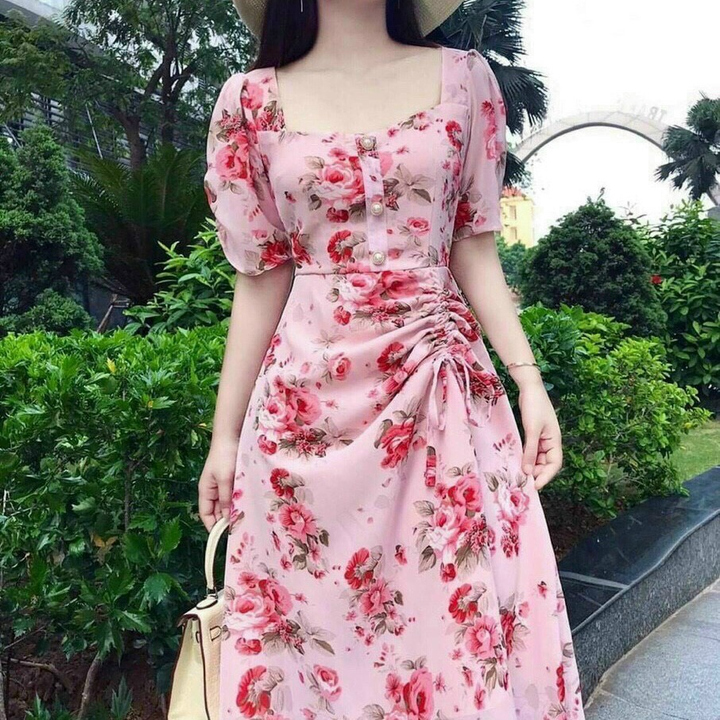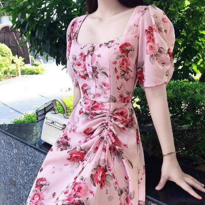 Tên sản phẩm: ĐẦM BÔNG RÚT DÂY ĐÍNH CƯỜM DÁNG DÀI THANH LỊCH V151 – CLOUDY DRESS