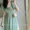 Tên sản phẩm: Đầm chất Kate dài đính kèm nút màu vàng cổ vuông V99 – CLOUDY DRESS
